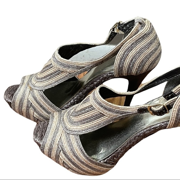 BAKERS Marisela Gray and taupe Open toe raffia heels size 9