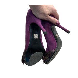 BAKERS Purple Suede Peep-Toe Heel Size 8.5 Paisley Bow & 4" Stiletto Heel