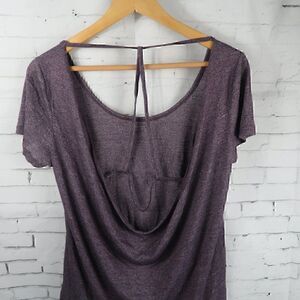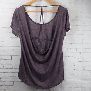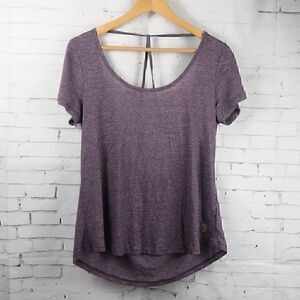 PLUM SHORT SLEEVE STRAPPY WATERFALL BACK BURNOUT YOGA TOP SIZE MEDIUM BY BALANCE COLLECTION PRE OWNED NO FLAWS