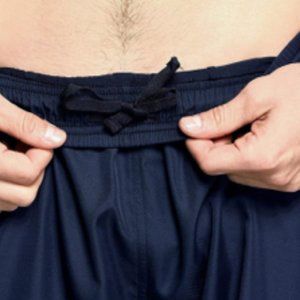 BALEAF Men's 7 Inch Navy Athletic Shorts. Size Large. Lightweight 100% Poly; liner 95% Poly, 5% Spandex. Elastic waist and draw-cord. Built-in compression shorts. Two inner side pockets, and one zipper back pocket. NWT