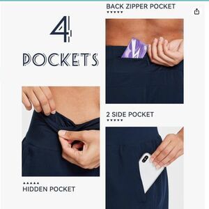 4 Utility Pockets: These 5 inches athletic shorts with 2 side zipper pockets secures your phone and a back zip for you key and card or small items, free your hands when workout. Plus 1 waistband drop-in pocket.