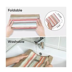 The BALEINE Extra Large Storage Tote is a rectangular 1-Pack storage bag made of waterproof polyester with color stripes. It features zippers, carrying handles, and has a load capacity of 50 pounds. The tote is foldable, measuring 23.6"L x 11.8"W x 11.8"H, making it suitable for storing clothing and camping gear. The product is designed by BALEINE.