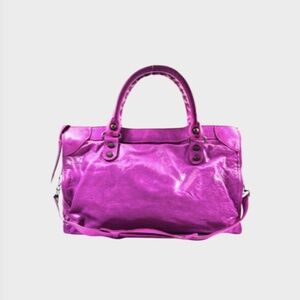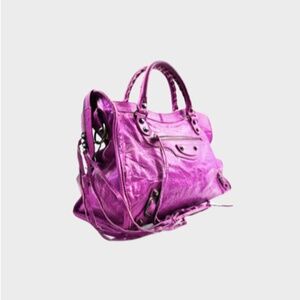 BALENCIAGA 2000S PURPLE LEATHER MOTORCYCLE CITY BAG
