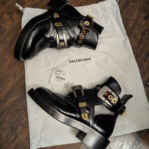 Authentic Balenciaga brushed leather half boots in size 35 (narrow fit), never worn but due to being in storage for awhile, there's some detachments along the straps (please see last picture), in like new condition overall