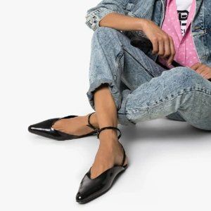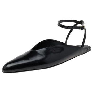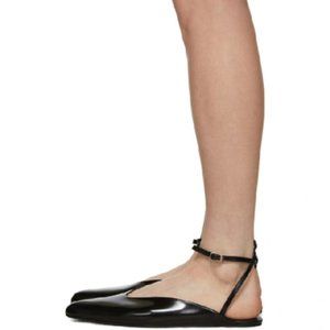 BALENCIAGA | Ankle-strap Patent Leather Flats In 1000 Black Size 36.5 New in Box