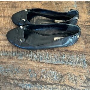 •Style: Brogue-trimmed ballet flats w/ studded accents