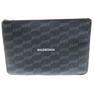 BALENCIAGA BB Monogram Leather Clutch Bag Black