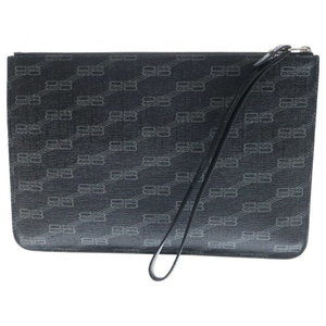 BALENCIAGA BB Monogram Leather Clutch Bag Black Includes a Certificate of Authenticity!