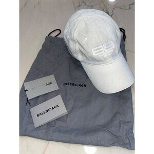 BALENCIAGA BB Paris License Hat in Dirty White Large New Womens Cap Destroyed