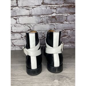BALENCIAGA BLACK WHITE POLISH CALFSKIN CHELSEA BUCKLE ANKLE BOOTS Women 37EU/6.5