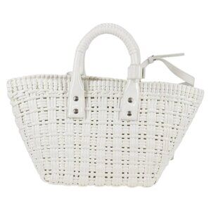 BALENCIAGA Bistro XS Hand Bag Enamel 2way White Silver