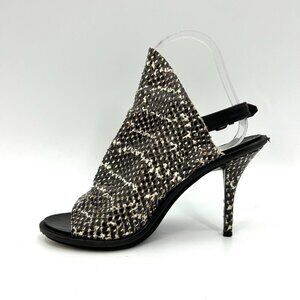 BALENCIAGA Black Ivory Real Snakeskin Slingback Stiletto Sandals Heels Size 6.5