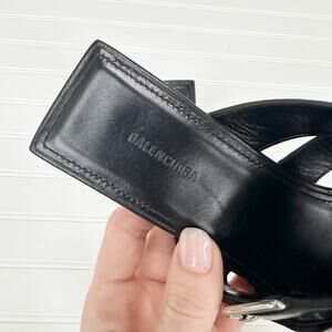 BALENCIAGA Black Leather Buckle 80mm Napa Heel Slide Sandals