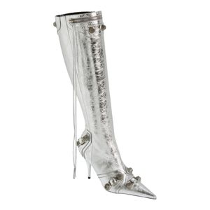 BALENCIAGA CAGOLE 90MM KNEE HIGH BOOTS IN SILVER SIZES US SZ 6 RETAIL $2,550
