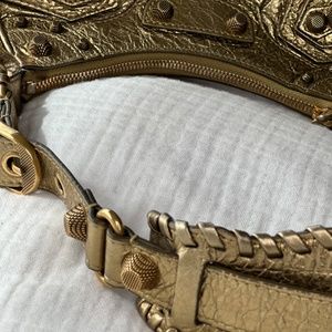 BALENCIAGA Cagole XS Studded Metallic Shoulder Bag
