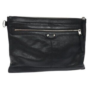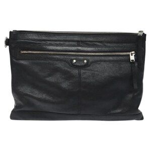 BALENCIAGA Clip L Clutch Bag Leather Black Silver