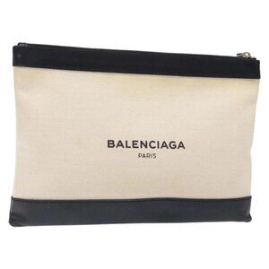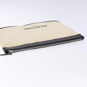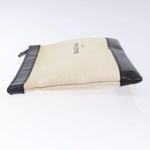 BALENCIAGA Clutch Bag Canvas Leather White black 373834 Auth gh296