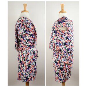BALENCIAGA DRESS PRINT SATIN PLEAT SLEEVE DROP WAIST sz FR 38 / US 6