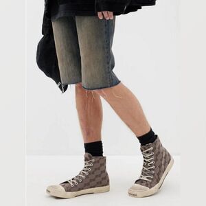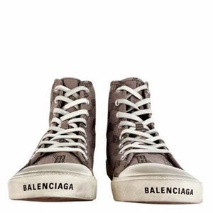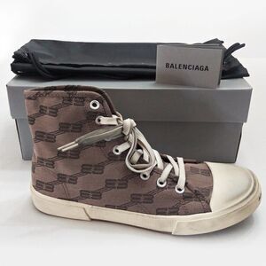 BALENCIAGA Distressed High-Top Sneakers BB Logo Canvas Brown Sz 42 NIB