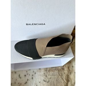 BALENCIAGA Elastic &Mesh High-Top Sneaker/Shoes~Black & Taupe~EU 36/US 6~$615.