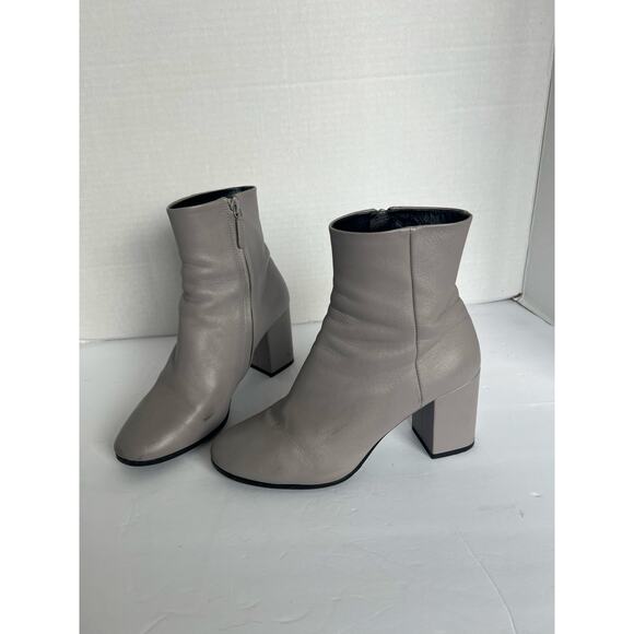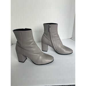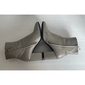 BALENCIAGA Gray Glove Leather Zip Up Chunky Heel Round Toe Ankle Boots 7 EU 37