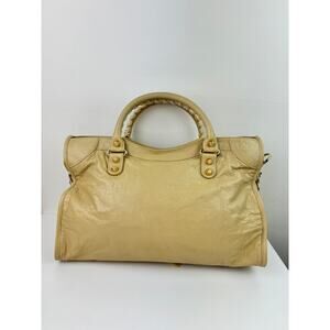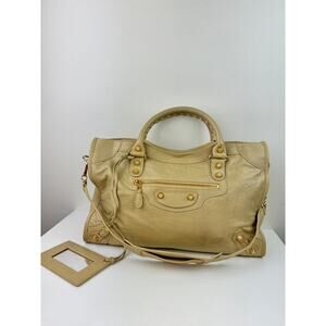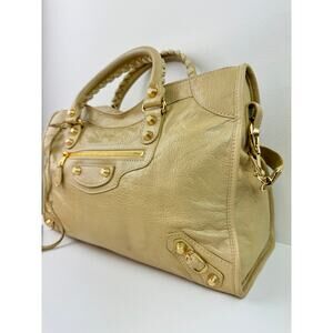 BALENCIAGA Le City Beige Nude Tone Classic Bag Gold Studded Hardware Staple