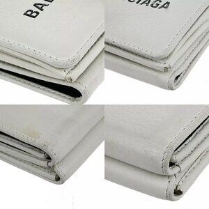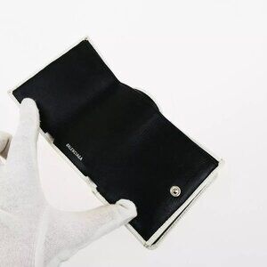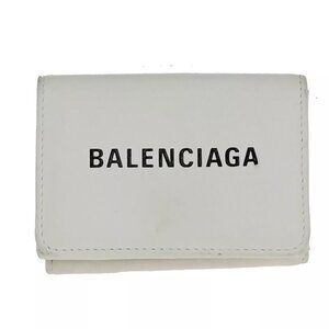 BALENCIAGA Logo Everyday Mini Trifold Compact Wallet Leather White Italy