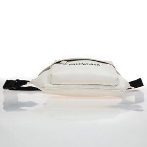 BALENCIAGA Logo Everyday Shoulder Body Bag Leather White SHW Italy