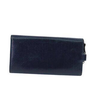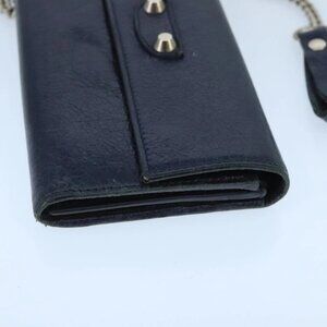 BALENCIAGA Long Wallet Leather Navy Silver Auth bs20089