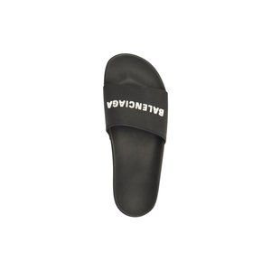 Pool Slide Sandal in black rubber with white 3D Balenciaga logo
