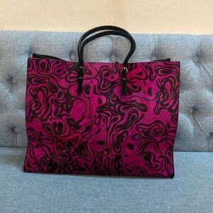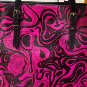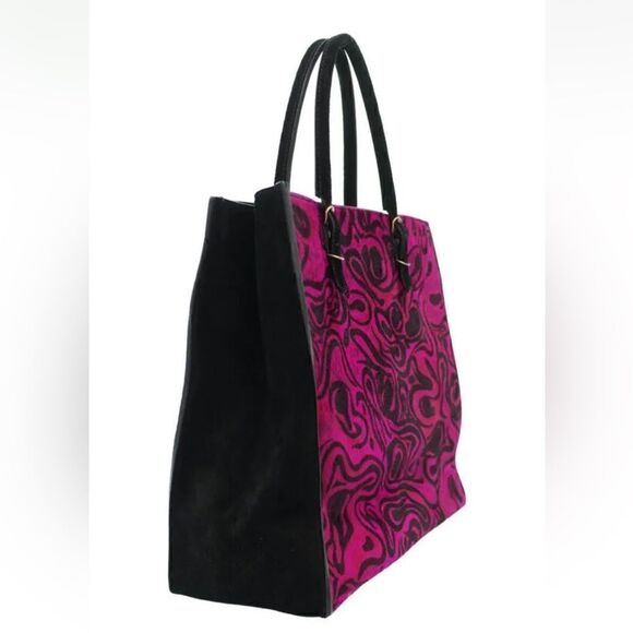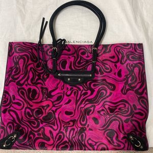 BALENCIAGA Magenta and Black Calf Hair and Suede Tote Bag