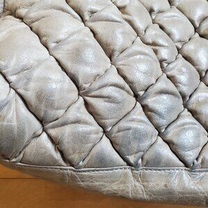The large handbag is back, so this is a perfect addition to your collection for running errands in style! BALENCIAGA quilted matelasse satchel bag in beige leather that is so soft, you could sleep on it if it actually was a quilt! I am not sure if it's lambskin or goatskin, but Balenciaga is known for making its handbags out of either back when this bag was made. There is obvious wear to the bag, but given that Balenciaga's look is so vintage, it really lends to the overall character of the bag!