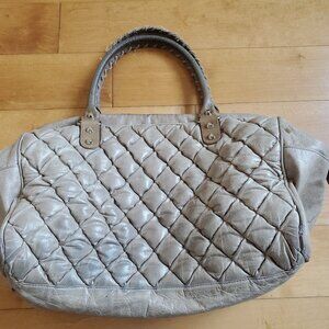 BALENCIAGA Matelasse Beige Quilted Large Leather Satchel Handbag Authentic