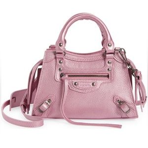 🔥BALENCIAGA Mini Neo Classic City Leather Top Handle Bag🔥authentic, brand new and never been used but comes without a tag, color metallic pink, size 8 1/2”W x 5 1/2”H x 3 1/2”D (3 1/2” strap drop, 17 1/2” - 21 1/2” convertible strap drop), comes with dust bag and authenticity card.