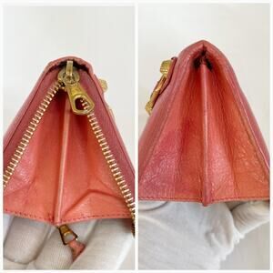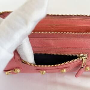 BALENCIAGA Motocross Leather Lambskin Zip Around Wallet Salmon