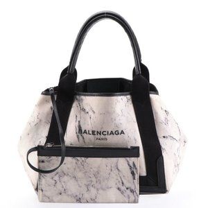 BALENCIAGA Navy Cabas Small Black White Marble Print Tote Bag with Zip Pouch