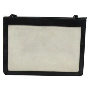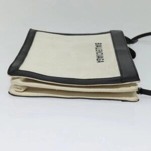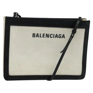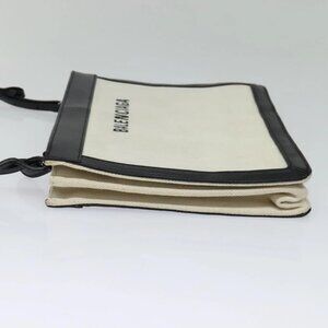 BALENCIAGA Navy Pochette Bag Canvas Leather White Navy Silver