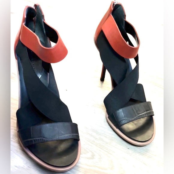 BALENCIAGA Neoprene Leather Crisscross Sandals Open Toe Red Black 6.5 $1000