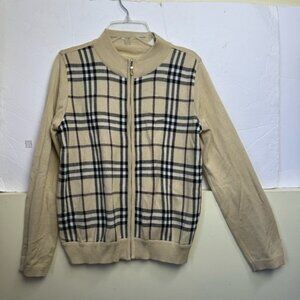 BALENCIAGA Nova Check Zipper Cardigan Knit Jacket Sweater Logo Neutral