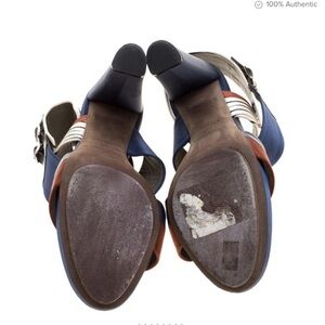 Elegant Balenciaga Paris heels with blue and brown/burgandy accents. Features unique striped design. Perfect for stylish outings. Authentic!