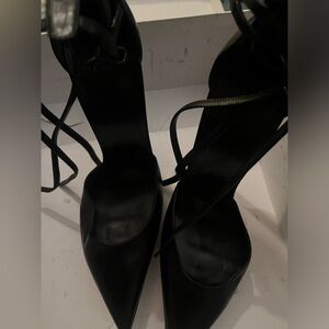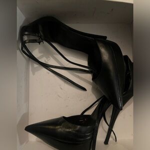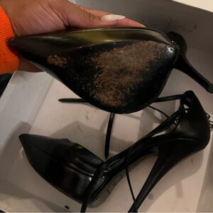 Black balenciaga pumps worn a lot still some life to them very difficult to walk in if you do not know how to walk in high heels, the are at least 5 inches double ankle strap fits a true 7.5-8
