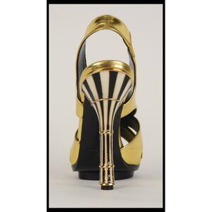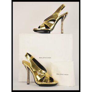 BALENCIAGA SHOES SANDALS ENAMEL GOLD LEATHER sz 37 /US 6.5
