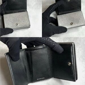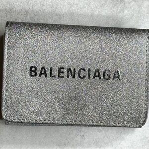 BALENCIAGA Silver Glitte Everyday Mini leather Wallet, EUC