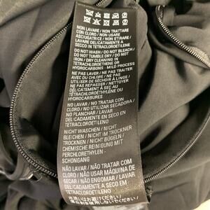 BALENCIAGA cocktail dress in a black viscose stretch blend fabric featuring a romper style with long panel "skirt" at front, draped design, and side and front zipper closures. Made in Italy.