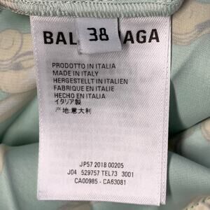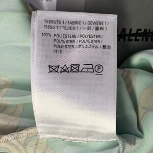BALENCIAGA skirt in a green and gold polyester fabric featuring a pleated style, asymmetrical hem, chain link print, and side zipper closure. Made in Italy.