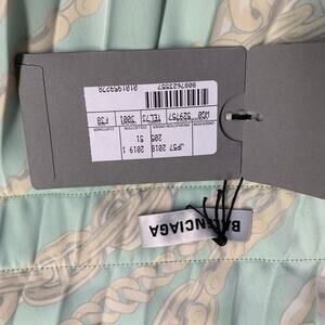 BALENCIAGA Size 6 Green Gold Polyester Chain Pleated Midi Skirt
