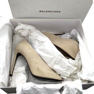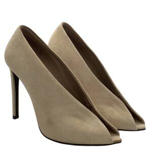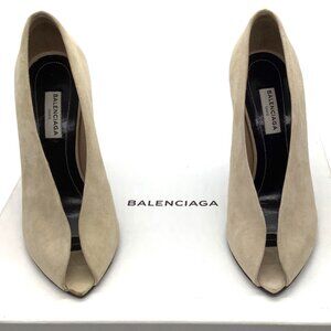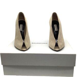 BALENCIAGA Split Vamp Stiletto Pumps 36 6 Booties Peep Toe Suede Neutral Beige