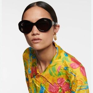 Stunning sunglasses accented in a round silhouette and faux tortoiseshell frame.