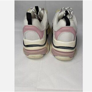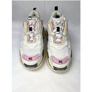 Crafted for contemporary fashionistas, the Balenciaga Triple S Men's Sneakers meld luxury with athletic style. The size 7 sneakers feature a unique multicolor palette that easily elevates any casual ensemble. Mesh fabric meets leather in a stunning combination that ensures both comfort and durability. EU size 40 and UK size 6 correspond to a versatile fit, making these sneakers a great addition to any discerning gentleman's collection. The Balenciaga Triple S design is a statement piece, offering a distinct look that's both stylish and comfortable for all-day wear.