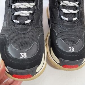 BALENCIAGA Triple S Sneaker Womens Sz 38 Black Made In Italy Designer Athleisure